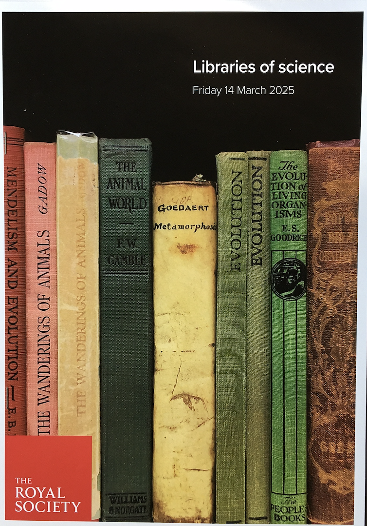 An interesting meeting with a full-house audience in the opulent surroundings of the Royal Society in Carlton House Terrace last week (14th March 2025). ‘Libraries of Science’ is an apt enough title, although the topics covered were mostly more specific. Talks focused mainly on aspects of the libraries of British learned and societies, from Antiquaries and Astronomy to Zoology, as well as on the Royal Society itself, during the eighteenth and nineteenth centuries. Particularly interesting was the overlap, from the earliest times, between the collections of libraries, archives, and museums. Naturally most attention was given to London-based institutions, although Glasgow, Spalding, and Tunbridge Wells got a look in. There were some exceptions to the temporal focus, with a presentation on astronomy books ranging from the earliest depictions of constellations to the present day.